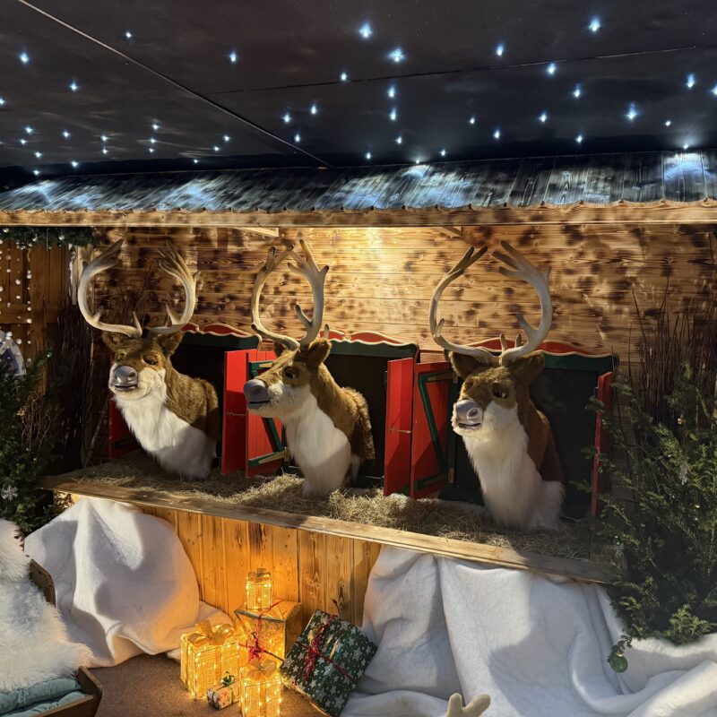 À deux pas, la Forêt des Rennes dévoile les majestueux compagnons du Père Noël, s’entraînant à tirer son traîneau sous la neige.