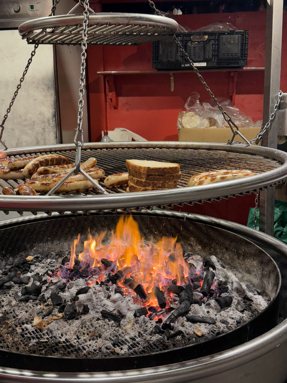 Goûtez aux délicieuses grillades des lutins : saucisses, brochettes et spécialités parfaites pour se restaurer tout en profitant de l’ambiance festive du marché.